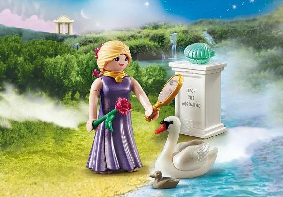 Dimensiones: 9.3 x 14.2 x 4.5 cm. Afrodita diosa del amor y la belleza. Sus atributos son el espejo dorado, la rosa y el cisne. Este producto contiene la carta con el texto en griego.