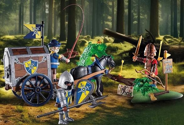 Dimensiones: 24.8 x 18.7 x 7.2 cm. Los caballeros de Novelmore trasladan en su convoy no solo tienen planos secretos, sino también oro de dragón cargado. Los bandidos de Burnham quieren conseguir esa valiosa carga y derriban un árbol para detener al convoy de transporte. Sin embargo, los caballeros de Novelmore harán todo lo posible para defender su propiedad. Con grandes héroes, astutos villanos, criaturas misteriosas e ingeniosas armas.