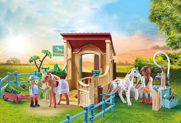 Dimensiones: 34.8 x 18.7 x 9 cm. Bienvenidos al acogedor Establo del Rancho de Waterfall. Aquí, los ponis tienen mucho espacio para deambular en el amplio paddock y son cuidados con mucho amor y cariño. Para el cuidado diario de los caballos, hay un área de lavado y numerosos accesorios disponibles. Una vez que los caballos y ponis están limpios, pueden descansar y disfrutar de un montón de heno fresco. ¡Este establo es un sueño para cada poni!