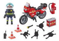 Dimensiones. 14.2 x 14.2 x 4.1 cm. El bombero atraviesa los atascos de tráfico en su ágil motocicleta, asegurando la escena del accidente. El manillar y el caballete móviles proporcionan un juego realista, mientras que la figura se asienta firmemente en la moto. El extintor y la caja portaequipajes pueden fijarse en el lateral, detrás del asiento, y transportarse cuando están desmontados. Los guantes desmontables, el casco con visera móvil y el protector permiten un detallado juego de rol.