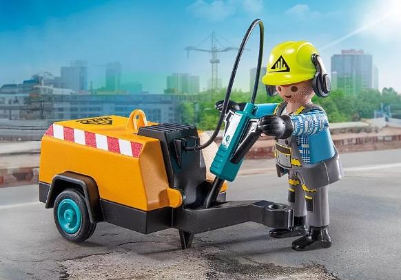 Dimensiones: 14.2 x 14.2 x 6.6 cm. Con un potente cincel conectado al compresor mediante una manguera de silicona, repara grietas en la carretera con facilidad. Lleva guantes y casco desmontable para mayor seguridad, mientras señaliza la zona con el cartel de obra. El práctico enganche de remolque facilita trasladar el equipo a la tarea. ¡Es hora de ponerse manos a la obra!