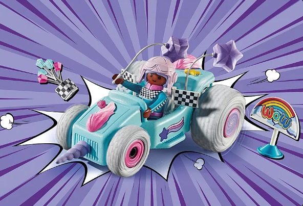 Dimensiones: 24.8 x 14.2 x 4.6 cm. Emocionantes carreras con el kart Racing Unicornio y accesorios. En sus marcas, preparados, listos… Sin duda, los pilotos salen disparados con su kart a toda velocidad. ¡Colecciónalos! Arts. 71632, 71633 y 71634.