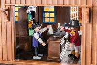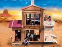 Dimensiones: 51.5 x 38.5 x 14.2 cm. Tienda del Oeste amueblada con apartamento en planta alta, dos figuras PLAYMOBIL. Edificio de dos pisos con área de tienda y muebles, artículos para la venta y muchos otros extras.