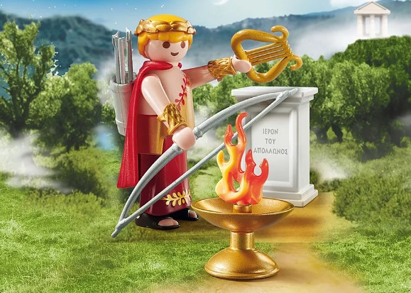 Dimensiones: 9.3 x 14.2 x 4.5 cm. Apolo, dios de la luz, de la curación, de la primavera y las artes con arco y flecha, lira de oro y cuenco con fuego. Este producto contiene la carta con el texto en griego.