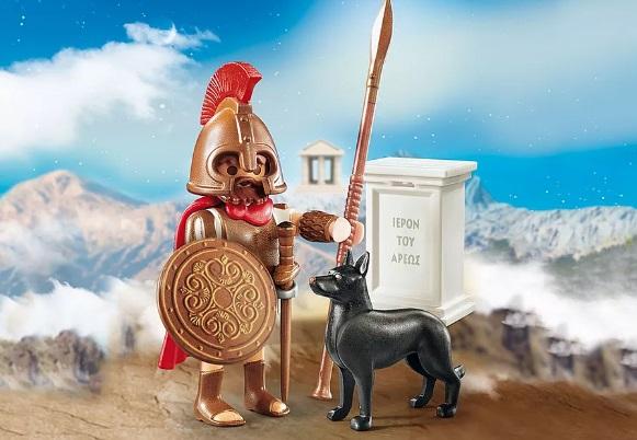 Dimensiones: 9.3 x 14.2 x 4.5 cm. Ares, dios de la guerra, con espada, casco, escudo, lanza y perro negro. Este producto contiene la carta con el texto en griego.
