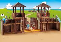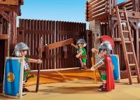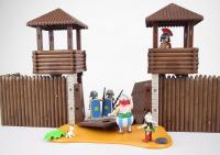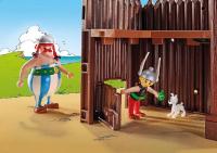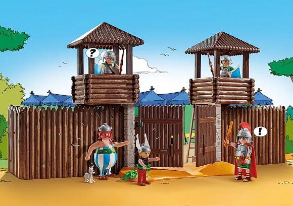 Dimensiones: 59.5 x 22 x 29.5 cm. Incluye los personajes de Astérix, Obélix y el centurión. Dos torres de vigilancia para que los romanos vigilen y una puerta secreta para escapadas furtivas. Las figuras romanas se pueden cambiar entre caras normales y "post-batalla", añadiendo un toque divertido a cada escaramuza.