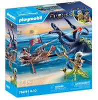 Dimensiones: 28.4 x 24.8 x 9.5 cm. Figuras de pirata, hombre pulpo y pulpo gigante. El amo de los océanos: Dark Kraken, un pulpo humano y líder de los Deepers, empuña el tridente mágico con brújula. Junto al monstruoso pulpo, lucha codo a codo contra el pirata que se acerca en una real batalla en el agua: El gigantesco pulpo lanza auténticos chorros de agua desde sus tentáculos, un desafío para el pirata. Utiliza accesorios como cañones y proyectiles para resistir al monstruo marino.