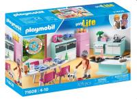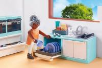 Dimensiones: 28.4 x 18.7 x 7.4 cm. La acogedora cocina con isla ofrece mucho espacio para cocinar y comer juntos. Aquí no sólo come la familia, sino que el adorable gato también encuentra algo para picar. Incluye frigorífico independiente, máquina de cocina, batidora, tostadora, vajilla y muchos otros accesorios. Este set está compuesto en más de un 80% de media por materiales reciclados y de origen natural.