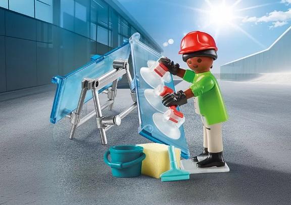 Dimensiones: 9.3 x 12 x 3.8 cm. Figura de cristalero con dos cristales, ventosas y más accesorios de limpieza.
