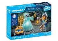 Dimensiones: 18.7 x 14.2 x 4.7 cm. Aventuras junto al caballero en su búsqueda del tesoro. Con un viejo mapa, se escabulle por las catacumbas del castillo, pero no está solo: un fantasma, que brilla con deslumbrantes colores en la oscuridad gracias a unos LED que cambian de color, custodia el tesoro. Funciona con una pila AAA de 1,5 V.