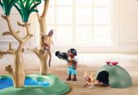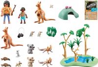 Dimensiones: 28.4 x 18.7 x 7.4 cm. La fauna de Australia es increíblemente diversa y goza de fama mundial. En la fuente de agua se pueden observar canguros, koalas, cucaburras e incluso ornitorrincos. ¿Y qué es eso que hay en el árbol? ¿Es acaso un lagarto de cuello fruncido? Con muchos animales:el canguro puede llevar a sus crías en su bolsa, y el lagarto de cuello fruncido puede levantar su fronda. Todos los sets de esta línea de productos están compuestos por más de un 80% de media de materiales reciclados y de origen biológico.