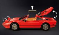 Dimensiones 34.8 x 18.7 x 9 cm. Incluye las cuatro figuras de los personajes principales de la clásica serie policiaca de televisión de los 80 Magnum, p.i.: Thomas Magnum, T.C., Rick y Higgins. Este superdepotivo está disponible en color rojo. Además, tal como el original, sus faros delanteros son abatibles, su capó que se abre en la parte trasera y su techo desmontable.