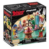 Dimensiones: 15 x 14 x 5 cm. Incluidos Astérix, el catador de Cleopatra y Paletabis, así como su ayudante Tornavis. Contiene también una tarta con dos piezas extraíbles y otros extras. Este set de puede complementar los con personajes de Cesar y Cleopatra (Art. 71270)