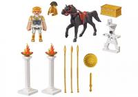 Dimensiones: 18.7 x 14.2 x 7.2 cm. Únete a Alejandro Magno, uno de los reyes más famosos de todos los tiempos, en su campaña contra los persas. Alejandro, hijo del rey Filipo II y de la reina Olimpia, nació en Pella a mediados del siglo IV a.C.. Tras el asesinato de su padre, Alejandro se convirtió en rey de Macedonia con sólo 20 años. Dos años más tarde, con una estrategia brillante, lanzó una increíble campaña militar contra los persas. Tras varias victorias y campañas ininterrumpidas que le llevaron hasta las profundidades de Asia, Alejandro cayó gravemente enfermo y murió en Babilonia a la edad de 32 años, en el 323 a.C. Embárcate en emocionantes aventuras de rol con el set de juego Alejandro Magno de PLAYMOBIL. El set de juguetes de 26 piezas incluye a Alejandro Magno, su caballo Bucéfalo, tres lanzas, dos columnas con cuencos de fuego, un casco y otros extras.