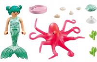 Dimensiones: 9.5 x 8.5 x 2.5 cm. La sirena cuida del pulpo y le alimenta con deliciosas hojas. El agua tibia hace que el pulpo cambie de color. Contiene una concha con ventosa para decorar superficies lisas.