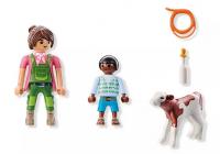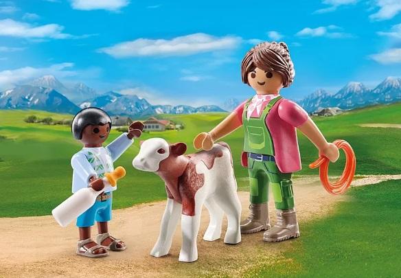 Dimensiones: 12 x 12 x 3.8 cm. El niño alimenta y cuida del pequeño ternero.