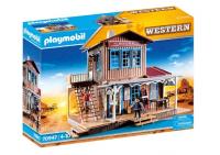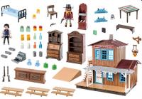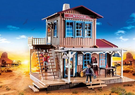 Dimensiones: 51.5 x 38.5 x 14.2 cm. Tienda del Oeste amueblada con apartamento en planta alta, dos figuras PLAYMOBIL. Edificio de dos pisos con área de tienda y muebles, artículos para la venta y muchos otros extras.